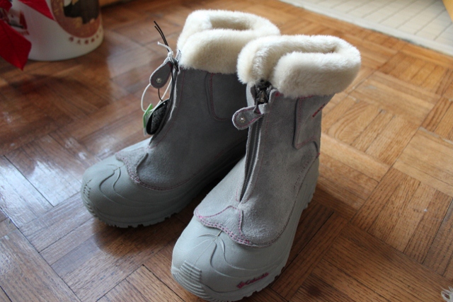 こっちはアメリカのネットで買ったスノーブーツ。今の足23だから来年も行けるように24を買った。ちょっと可愛すぎたかな小陸には。