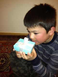 帰宅後、「お母さん、どんなティファニーもらえたの?」って言われるまであの水色の箱を開けるのも忘れてました。そしてうちのイケメン隊から授与。