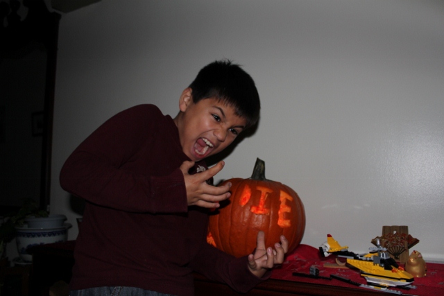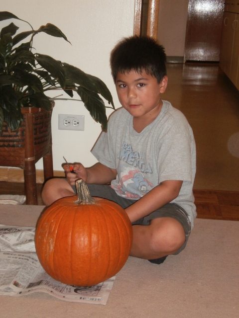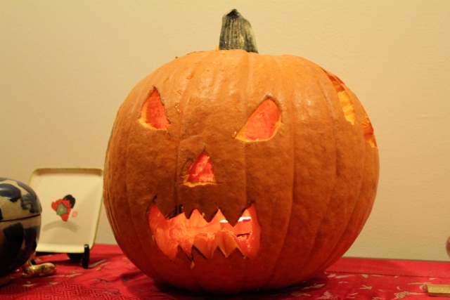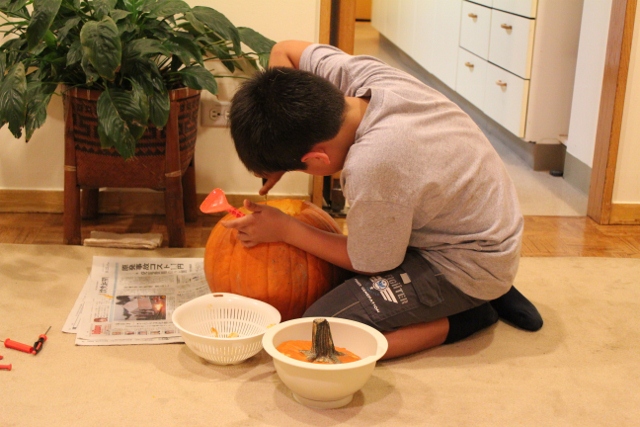 帰宅後盛り上がり気分のまま毎年恒例のパンプキンカーヴィング。ここ2年ほどは小陸が担当してます。