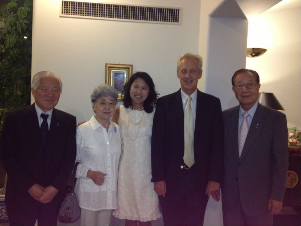 この日は90人出席予定でした。なんとわが故郷が誇る(っていうか~)M元首相も出席予定でセキュリティ関係ぴりぴりでしたが結局直前になってこれないと連絡があり・・・残念でした。国会議員は6~7人来てた・・・でも私が知ってたのは町村元官房長官くらい?老陸の仕事って防衛・北朝鮮関係だから結構地味な仕事関係なのかも。