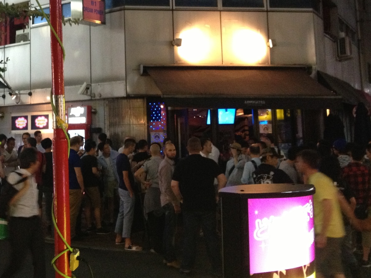 外人ゲイ御用達のスポーツバー?マッチョ系多し。老陸の職場にもた~くさんいるけど、こういうところに遊びに来てるのかしら?お店のトオルちゃんによると「ゲイはね平和主義だから、この町は安全なの」って。女性だけでも普通に遊びにこれます。でも変な感じだけどね。この日はお昼もご馳走になっちゃったし、この夜の部もご馳走になっちゃってありがたいことです。オカマバーで財布だしてお会計の取り合いしてたらトオルちゃんが「女性同士よく見る光景よね。いいじゃないのよ払ってもらえば?どうせお財布持ってきてないんでしょ~」なんていわれちゃったわ。こういう毒舌がいいんだよね、オカマバーって!