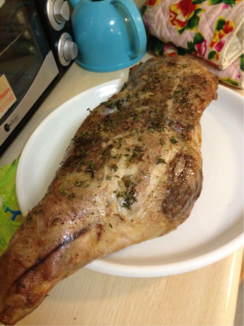 家族3人じゃ絶対食べきれないLeg of Lamb。久々に焼いたわ。