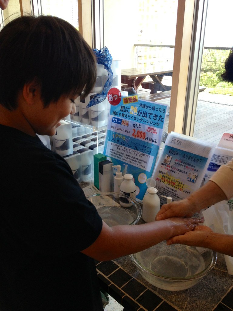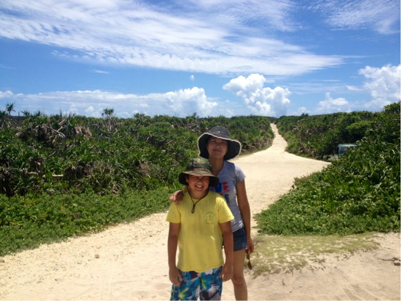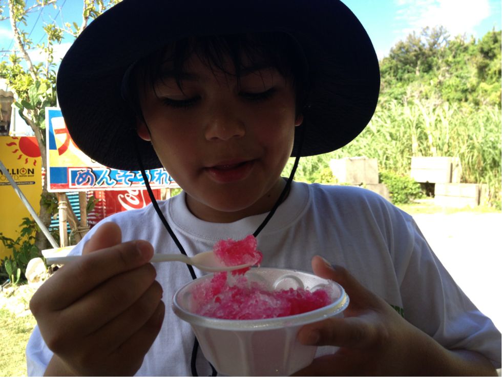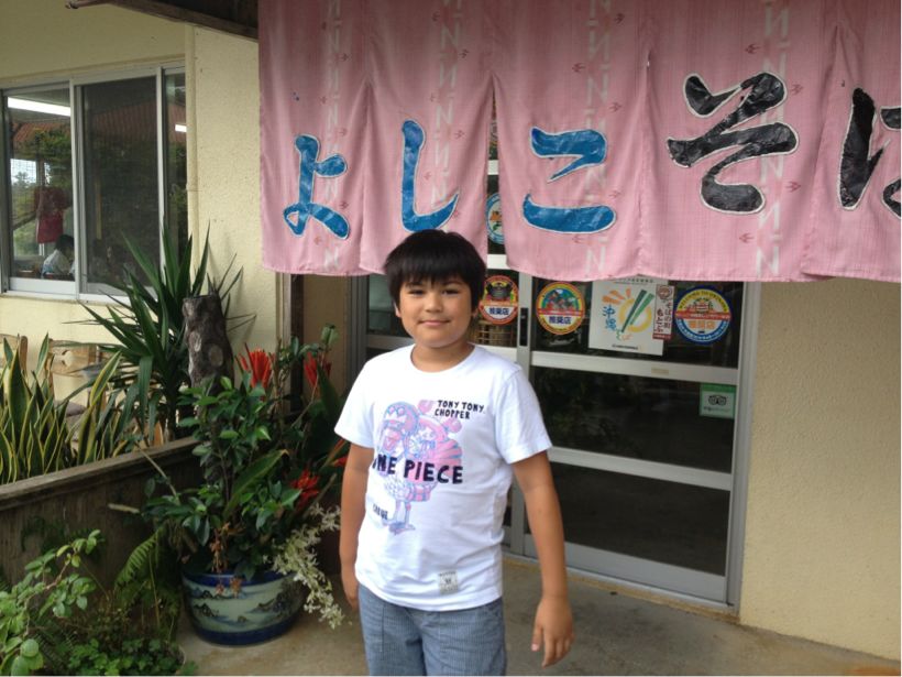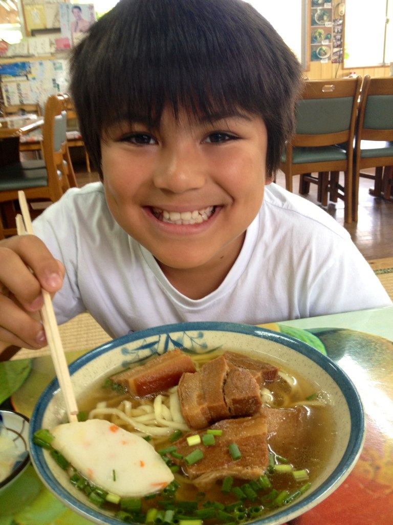 老陸が海に潜ってる間母子は沖縄そば、食べ収め~。こいつはこいつでこういうのめっちゃ嬉しいわけね。