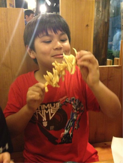 フレンチフライを串刺しにして食べたり・・・いまさらながら男子3人とか育ててるお母さんたち大変だなーと思う。うちは一人でも手が余るよ。