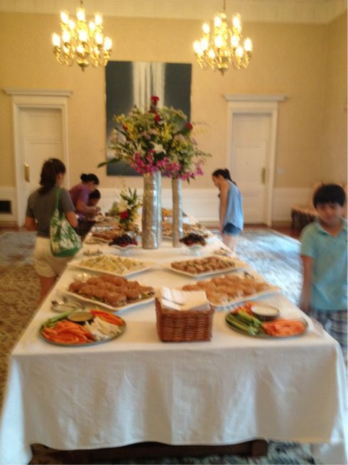 そんなわけで4時くらいからケータリングさんが来たり、ビールやジュースが配達されてそれを冷やしたり。ドリンクコーナーをセットしたり。どんだけ歩いたか豪邸内。