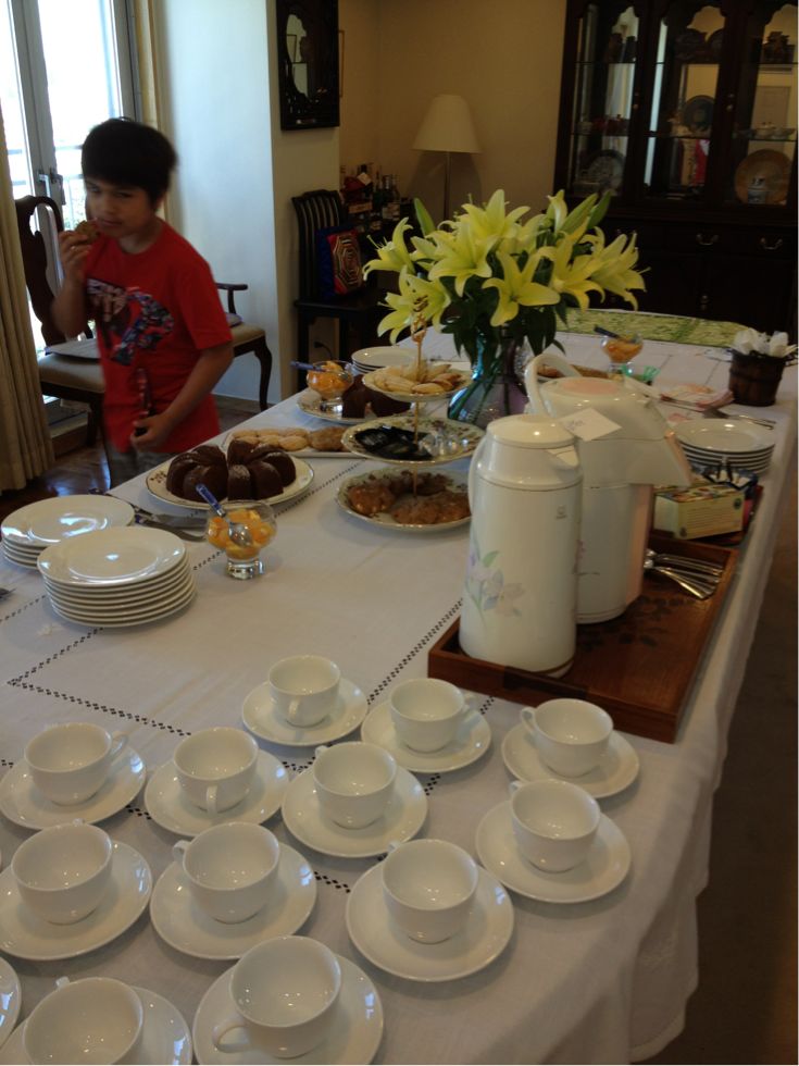 約2年半ぶりにコーヒーモーニングのホストをやった。前回のときは友人二人にお願いしてお抹茶をたててもらって日本文化を紹介したんだったわ(お正月だったし)。今回はもうそんな余裕なし。