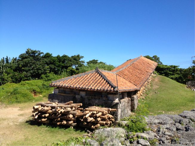 読谷のやちむんの里。まきを積んで窯入れの準備中。