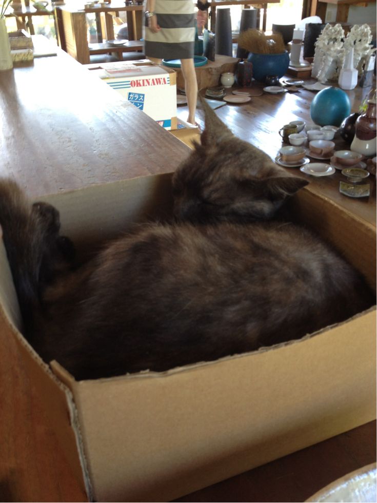 大好きな陶芸家(買えないけど)大嶺先生のアトリエにいた猫箱(鍋じゃなくて)。かわいいね~。