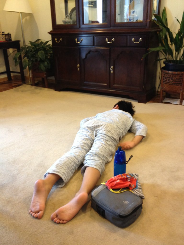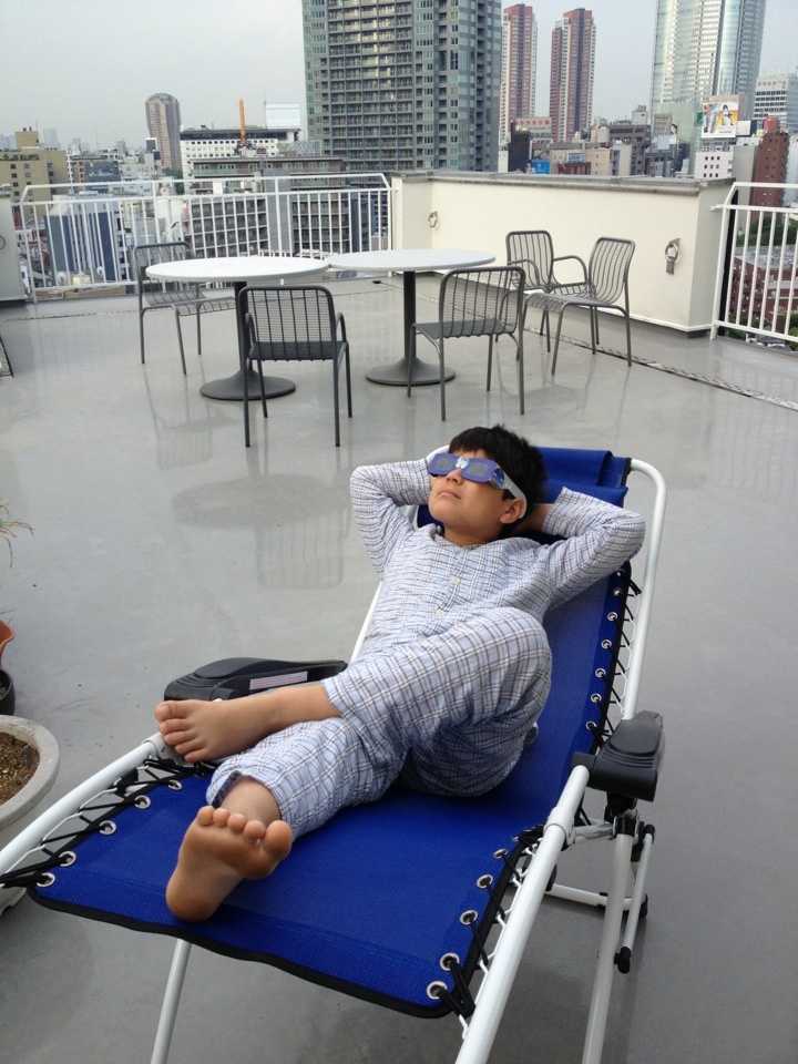小陸はさっさと蒸しエビの握り15個食べて「Diary of Wimpy kids」の世界へ。「ダディたちうるさすぎる」って。すみません。