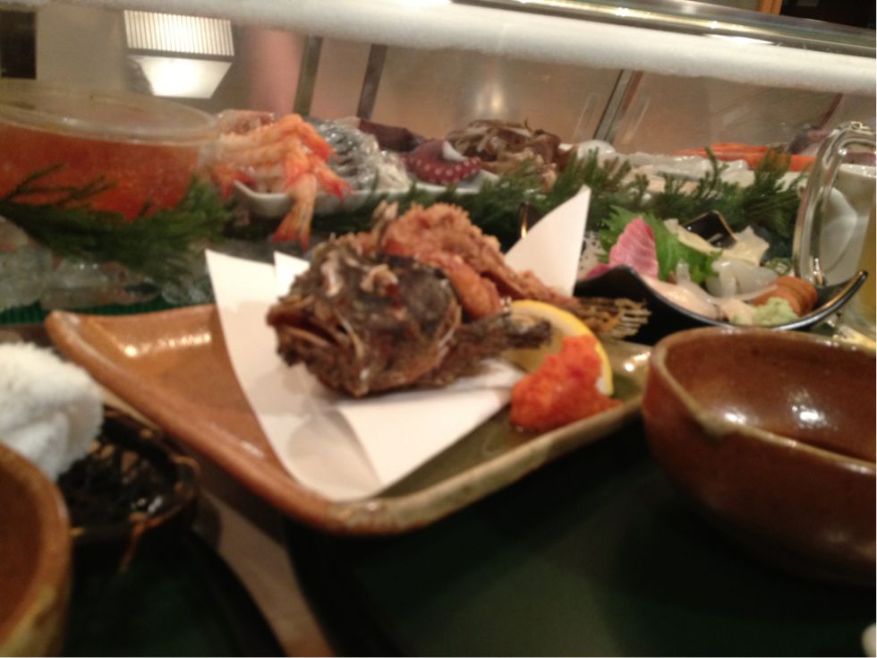 おこぜを隣の女性が食べてておいしそ~ってのぞいたら彼女の膝にはめっちゃ変な生き物が・・・チャイニーズなんとかっていう頭だけに毛が生えてるワンコでした。ワンコもOKなすしや「江戸半」、興味のある方は六本木通りへどうぞ~。2階はフェティッシュバーなんで間違えてはいらないでね!